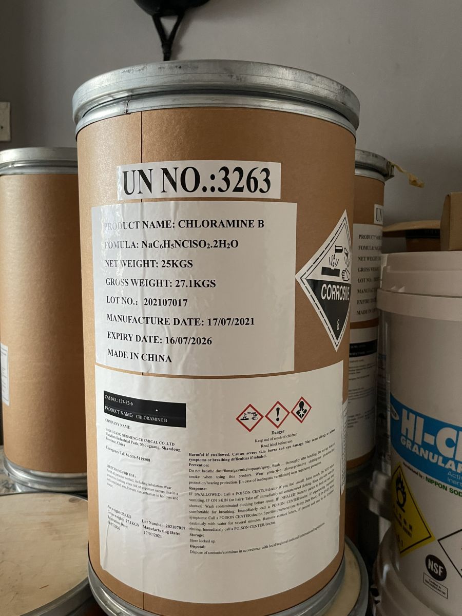 CLORAMIN B TRUNG QUỐC – CHẤT KHỬ TRÙNG DIỆT KHUẨN – CHLORAMIN B là một hóa chất được sử dụng chủ yếu trong lĩnh vực xử lý nước, cụ thể là khử trùng nước sinh hoạt. Tính oxy hóa mạnh của Chloramine B giúp nó diệt trừ các loại vi khuẩn có hại cho da, cho đường ruột, mắt… tồn tại trong nước.