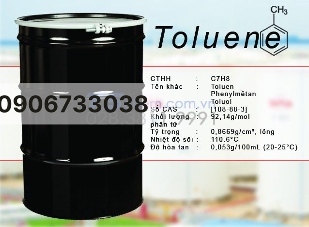 tên sản phẩm: TOLUENE C7H8 Methyl Benzene Tên khác: Toluol, Methyl Benzene, Toluene ( Toluol ) phenyl metan Danh pháp IUPAC : Metylbenzen Công thức hóa học: C7H8 ( CH3C6H5 ) Số CAS: [108-88-3] Xuất xứ: Hàn Quốc, Singapore, Thái Lan. Đóng gói: 178kg/179kg/ phuy |