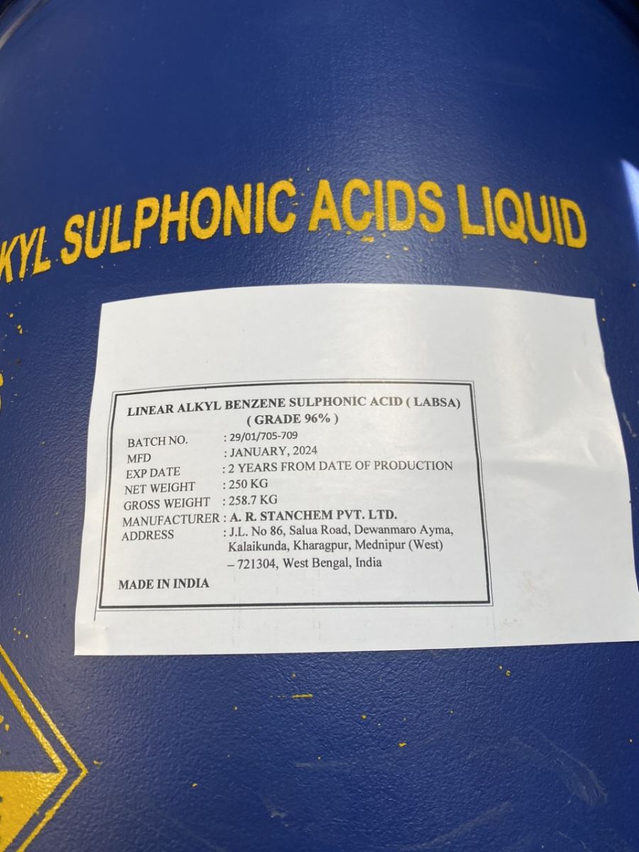 LABSA 96% là chất lỏng sệt màu vàng, không cháy, tan trong nước. LABSA 96% có độc tính nhỏ, nó trung tính và nhạy với độ cứng của nước, khó bị oxy hóa.